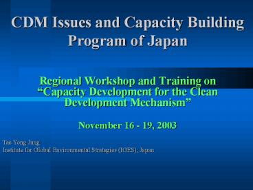 <Notice: Removed> CDM Issues and Capacity Building Program of Japan PowerPoint PPT Presentation