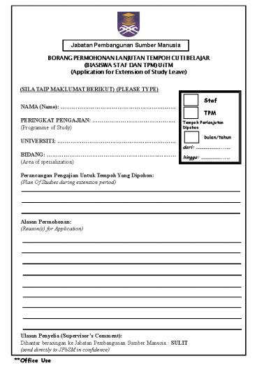 BORANG PERMOHONAN LANJUTAN TEMPOH CUTI BELAJAR PowerPoint PPT Presentation