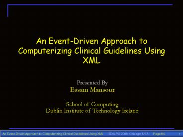 Title: An Event-Driven Approach to Computerizing Clinical Guidelines Using XML