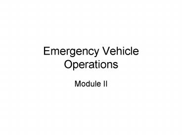 Emergency Vehicle Operations PowerPoint PPT Presentation