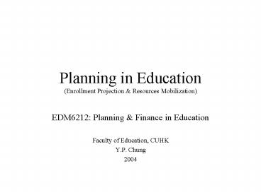 <Notice: Removed> Planning in Education (Enrollment Projection PowerPoint PPT Presentation