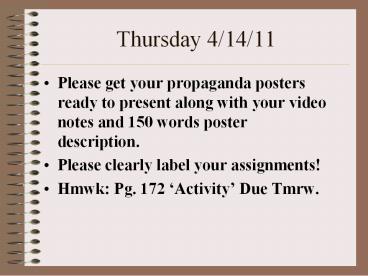 Thursday 4/14/11 PowerPoint PPT Presentation