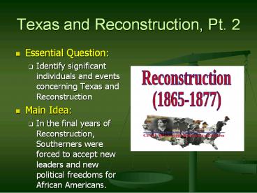 <Notice: Removed> Texas and Reconstruction, Pt. 2 PowerPoint PPT Presentation