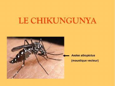 est très répandu à la Réunion). - Le virus du chikungunya ne se transmet pas