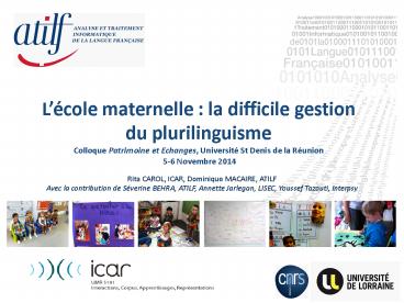 Rita CAROL, ICAR, Dominique MACAIRE, ATILF Avec