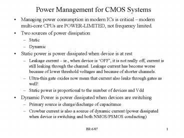 <Notice: Removed> Power Management for CMOS Systems PowerPoint PPT Presentation