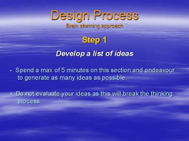 <Notice: Removed> Design Process Brain storming approach PowerPoint PPT Presentation