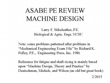 Title: ASABE PE REVIEW MACHINE DESIGN