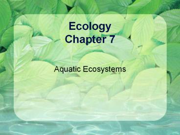 Ecology Chapter 7 PowerPoint PPT Presentation