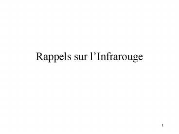 1Rappels sur lInfrarouge