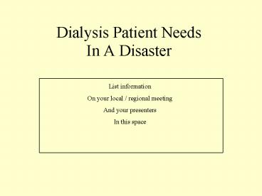 <Notice: Removed> Dialysis Patient Needs In A Disaster PowerPoint PPT Presentation