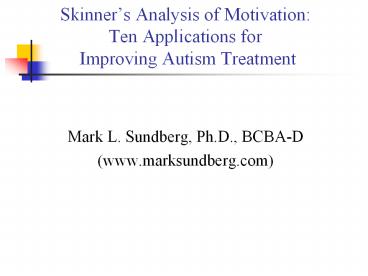 - Mark L. Sundberg, Ph.D., BCBA-D