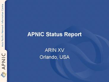 APNIC Status Report PowerPoint PPT Presentation