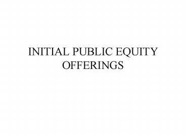Title: INITIAL PUBLIC EQUITY OFFERINGS