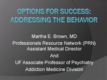 <Notice: Removed> Options For Success: Addressing The Behavior PowerPoint PPT Presentation