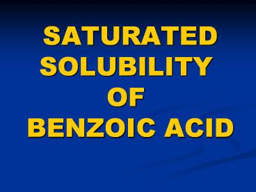 Title: SATURATED SOLUBILITY OF BENZOIC ACID