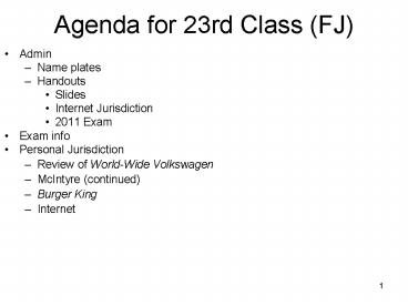 <Notice: Removed> Agenda for 23rd Class (FJ) PowerPoint PPT Presentation