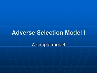 Adverse Selection Model I PowerPoint PPT Presentation