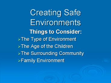 also explore at the child care environment - In some families, safety is not addressed. Those