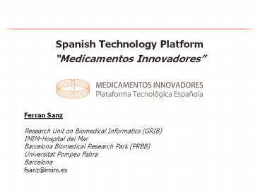 <Notice: Removed> Spanish Technology Platform PowerPoint PPT Presentation