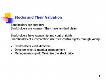 <Notice: Removed> Stocks and Their Valuation PowerPoint PPT Presentation