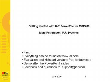 screen - Links to IAR PowerPac for MSP430 documentation in