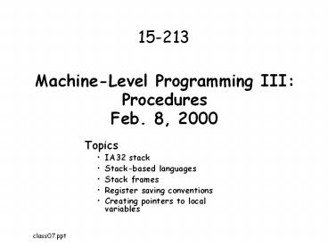 Title: Machine-Level%20Programming%20III:%20Procedures%20Feb.%208,%202000