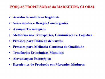 FORÇAS PROPULSORAS do MARKETING GLOBAL