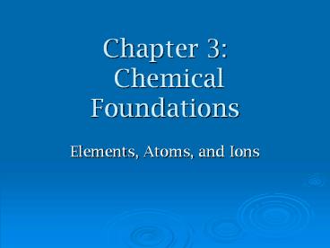 Chapter 3: Chemical Foundations PowerPoint PPT Presentation