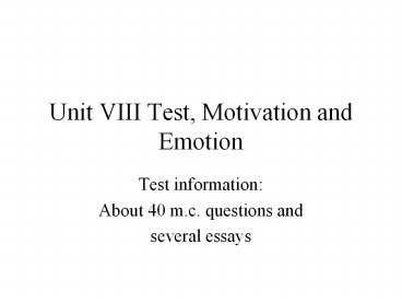 <Notice: Removed> Unit VIII Test, Motivation and Emotion PowerPoint PPT Presentation