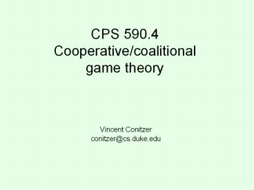CPS 590.4 Cooperative/coalitional game theory PowerPoint PPT Presentation