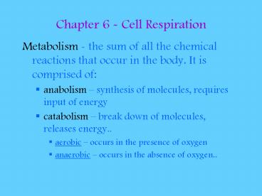 <Notice: Removed> Chapter 6 - Cell Respiration PowerPoint PPT Presentation