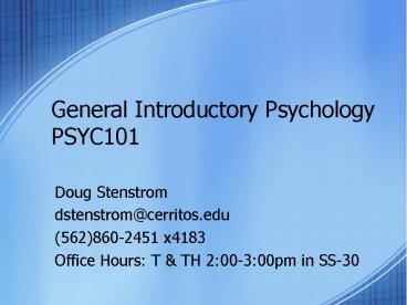 <Notice: Removed> General Introductory Psychology PSYC101 PowerPoint PPT Presentation