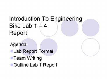 Introduction To Engineering Bike Lab 1 PowerPoint PPT Presentation