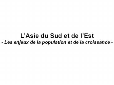 LAsie du Sud et de lEst- Les enjeux de la