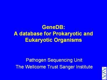 <Notice: Removed> GeneDB: A database for Prokaryotic and Eukaryotic Organisms PowerPoint PPT Presentation