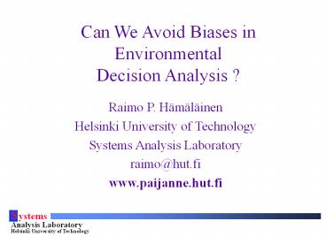 Title: Can We Avoid Biases in Environmental Decision Analysis ?