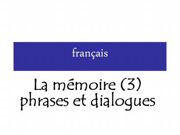 • La mémoire (3)phrases et dialogues