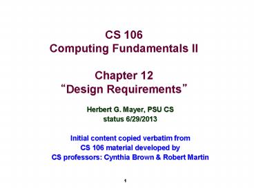 <Notice: Removed> CS 106 Computing Fundamentals II Chapter 12 PowerPoint PPT Presentation