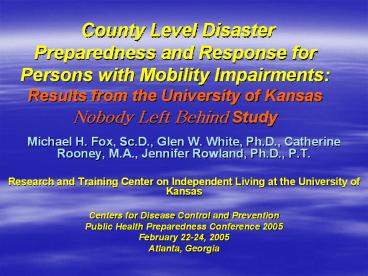 <Notice: Removed> County Level Disaster Preparedness and Response for Persons with Mobility Impairments: Results from the University of Kansas Nobody Left Behind Study PowerPoint PPT Presentation