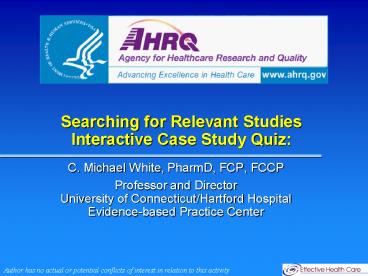 <Notice: Removed> Searching for Relevant Studies Interactive Case Study Quiz: PowerPoint PPT Presentation
