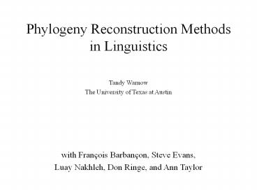 UT-Austin. - Collaborators Don Ringe (Penn), Steve Evans
