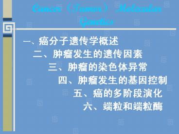<Notice: Removed> Cancer(Tumor) Molecular Genetics PowerPoint PPT Presentation