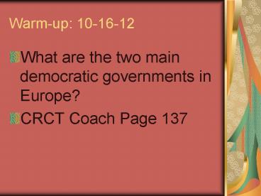 Warm-up: 10-16-12 PowerPoint PPT Presentation
