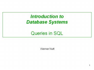<Notice: Removed> Introduction to Database Systems Queries in SQL PowerPoint PPT Presentation