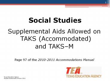 - Supplemental Aids Allowed on TAKS (Accommodated)