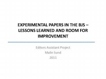 <Notice: Removed> EXPERIMENTAL PAPERS IN THE BJS PowerPoint PPT Presentation