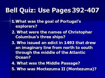 <Notice: Removed> Bell Quiz: Use Pages 392-407 PowerPoint PPT Presentation