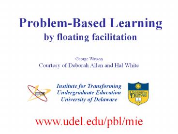 <Notice: Removed> Problem-Based Learning by floating facilitation PowerPoint PPT Presentation