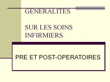 Title: GENERALITES SUR LES SOINS INFIRMIERS